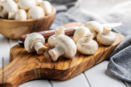Fresh white champignon mushrooms.