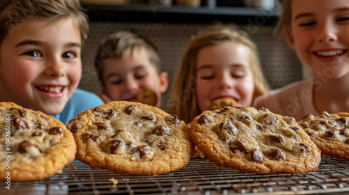 cookie, cooling, rack, family, children, smiling, chocolate, dessert, baking, kitchen, happy, snack, delicious, treat, homemade, joy, fun, together, sweet, enjoyment, laughter, children, food, sharing, warmth, crispy, gold, indulgence, playful, cosy, aroma, celebration, bonding, happiness, moment, love, sweet, time, childhood, memory, oven, baked, good, chips, smile, tasty, friends