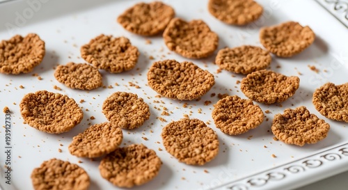 Freshly baked crunchy cookies on white plate