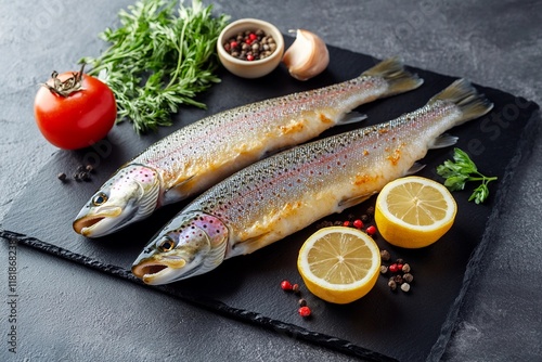 Freshly caught trout prepared for a gourmet meal with vibrant ingredients