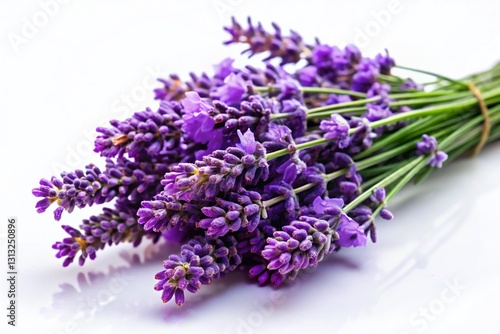 Freshly Plucked Lavender Sprigs on White Background - Beautiful Purple Flowers for Design