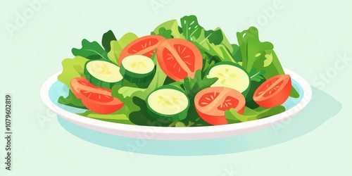 Freshly Prepared Garden Salad with Crisp Lettuce, Sliced Tomatoes, and Sliced Cucumbers on a Light Background for Healthy Eating and Nutrition Themes