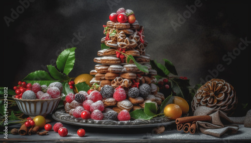food, fruit, dessert, decoration, wood, cranberry, epicure, berry fruit, celebration, season, chocolate, sweet food, winter, dark, nature, berry, cookie, table, gift, leaf, freshness, tree, cone, healthy eating, homemade, raspberry, sugar, snack, culture, candy, variation, ornate, organic, ball, rustic, baked, orange, almond, currant, plate, meal, composition, nut, cooking, indulgence