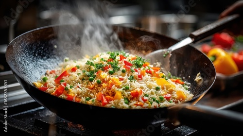 advertising, being, cooking, culinary, delicious, detailed, dinner, eatery, expertise, favor, food, frying, gas, gastronomy, healthy, heat, homemade, indoor, kitchen, lunch, meal, meat, moment, nourishment, open, pan, plain, preparation, rice, setting, shot, sizzling, space, spatula, staple, steam, stir, stove, text, tradition, utensil, vegetable, wok, wooden