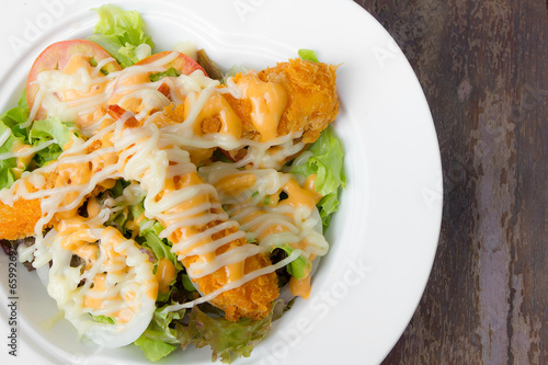 fried shrimp salad with sauce