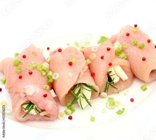 meat, raw, fresh, paupiette, stuffed, rosemary, cheese, mozzarella, cream cheese, dairy product, cooking, kitchen, food, food, food, delicious, eatery, pepper, sharp, red, peppercorn, onion, ingredient, quality