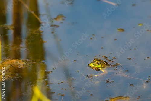 water, frog, nature, duck pond, animal, lake, green, amphibian, wildlife, leaf, swimming, wet, summer, swamp, wild, outdoors, bullfrog, reflections, background