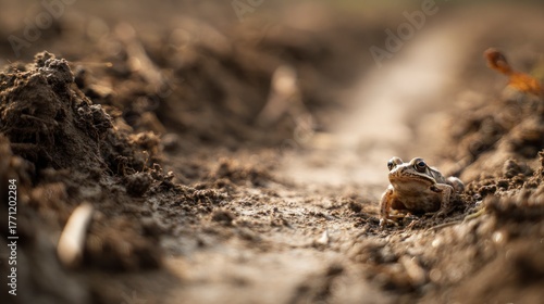 Frog on dirt path