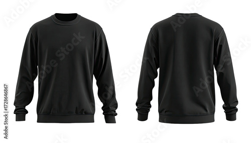 sweatshirt, black, front, back, view, clothing, fashion, design, casual attire, long, sleeve, blank, template, apparel, style, graphic, digital, product, illustration, three-dimensional, rendering, wear, simple, solid, colours, fabric, soft, warm, comfortable, modern, trendy, classic, silhouette, model, virtual, image, display, preview