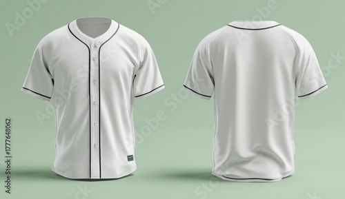 clothing, activewear, jersey, baseball, uniform, casual attire, apparel, fabric, knit up, sleeve, collar, buttons, design, style, fashion, material, textile, sport, athletic, team, game, player, outfit, wear, trend, modern, simple, classic, elegant, neutral, white, black, detail, seam, fit, cut, fabrication, stitch, garment, clothes, studio, photo, closeup, back, front