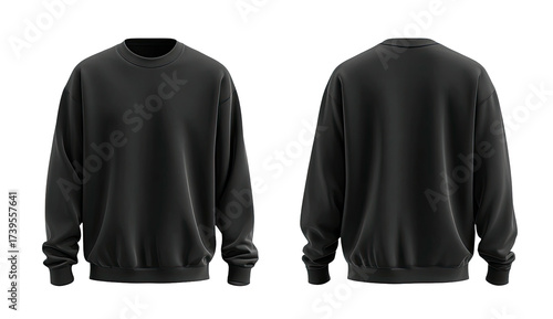 garment, clothing, apparel, sweatshirt, black, dark, design, fabric, material, texture, front, back, view, style, fashion, sleeve, cuff, collar, round, neck, loose, fit, cosy, casual attire, everyday, comfortable, minimalist, simple, modern, blank, template, studio, render, isolated, plain, shadow, monochrome, unisex, clothes rack, trend, urban, street, oversize, lifestyle, aesthetic