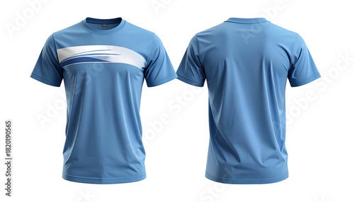 apparel, tee, shirt, clothing, blue, white, abstract, design, fabric, cotton, front, back, view, sleeve, round, neck, summer, casual attire, wear, style, fashion, plain, light, bright, clean, simple, modern, realistic, comfortable, soft, studio, isolated, textured, detail, surface, shape, shadow, graphic, product, template, close, up, polyester, activewear, activewear, exercise, athletic, performance