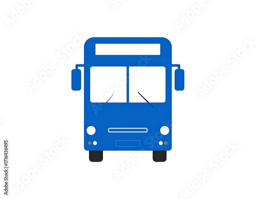 Front view of a simple blue bus icon. Flat style