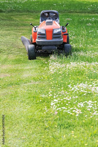 lawn mower, gardening, lawn, garden, field, grass, green, equipment, colours, outdoors, machine, day, cutting, red, turf, summer, nobody, 1, tire, spring, wheel, growth, park, view, occupation