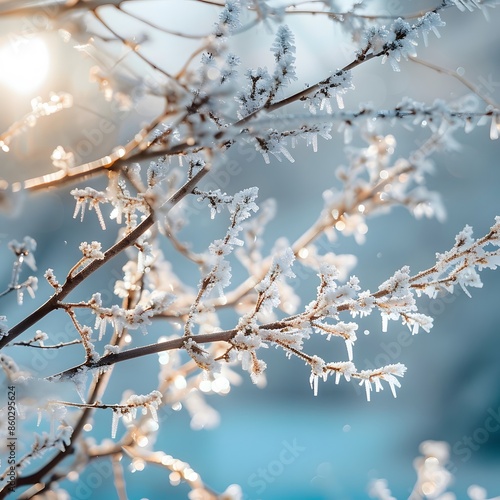 Frost-Covered Branches with Sparkling Ice Crystals