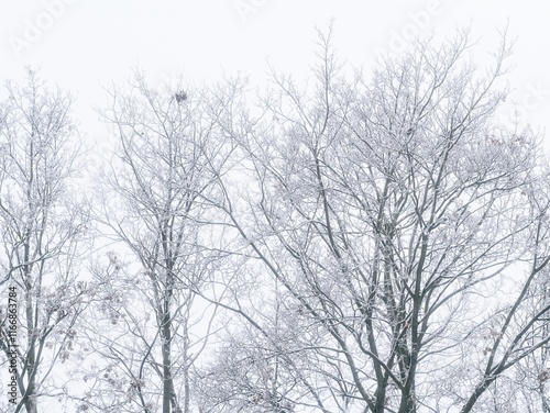 Frosty branches of multiple winter trees