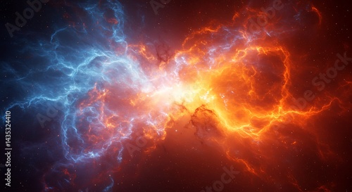 fire, ice, energy, clash, conflict, power, heat, cold, light, dark, abstract, background, texture, plasma, electric, spark, glowing, vibrant, intense, dynamic, swirling, collision, opposing, force, element, chaos, dualism