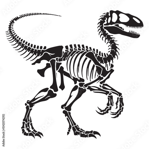 Frozen in time – Velociraptor skeleton silhouette transformed into minimalist Velociraptor skeleton vector – dinosaur skeleton silhouette