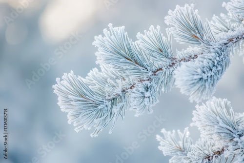 Frozen pine branches arching gracefully under the weight of winter’s frost.