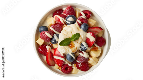 Fruit Salad in a Bowl with Creamy Topping and Fresh Mint Leaves Healthy Dessert Nutritious Sn