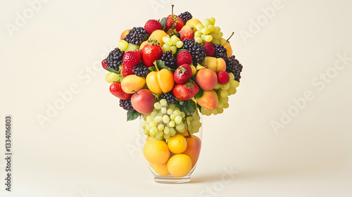 fruit, bouquet, vase, grape, strawberry, blackberry, peach, arrangement, fresh, healthy, colourful, ripe, juicy, glasses, still, life, food, vitamin, alimentary, delicious, sweet, dessert, snack, treat, diet, wellness, well-being, organic, natural, vegetarian, vegan, garden, harvest, summer, autumn, season, table, kitchen, background, studio, shot, isolated, nobody, plant, edible, ingredient, raw, vibrant, closeup