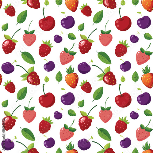 pattern, seamless, vector, wallpaper, fruit, illustration, flower, design, food, leaf, floral, nature, decoration, summer, texture, art, spring, green, berry, autumn, ornament, vintage, seamless pattern, red apple, green leaf, white background, fresh fruit, health food, fabric design, wrapping paper, sweet, strawberry, apple, fresh, blackberry, cranberry, cherry, healthy, blueberry