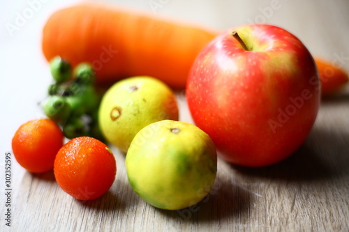 Fruits and vegetables on the wood floor