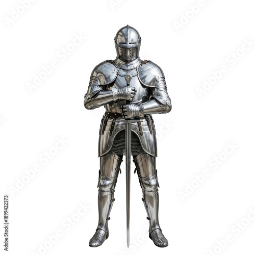 Full Body Knight in Shiny Metal Armor with Sword