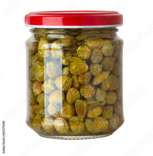 Full glass jar of pickled capers