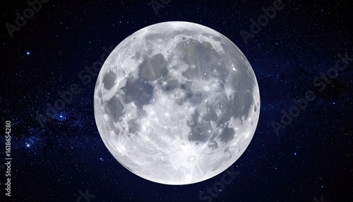 Full Moon Over Starry Night Sky with Luminous Brightness and Detail