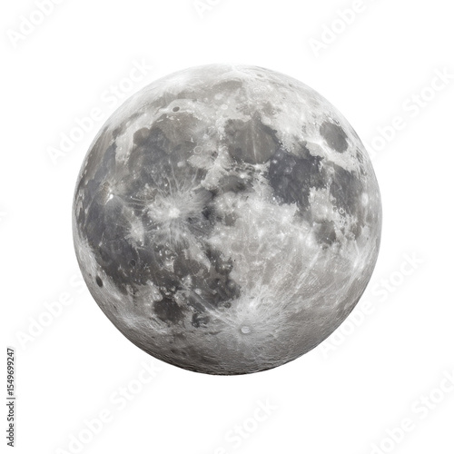 Full Moon with Detailed Surface Features Against Black Background for Astronomy and Night Sky Enthusiasts Transparent background or PNG