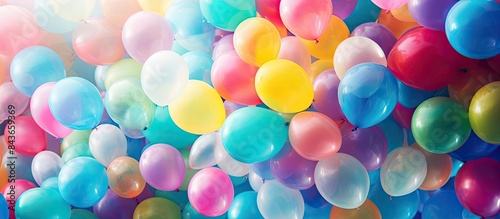 Fun vibrant colorful balloons corner composition. copy space available