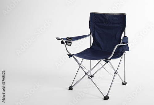 chair, folding, portable, blue, fabric, seat, backrest, silver, metal, frame, lightweight, compact, foldable, stable, plastic, foot, minimalist, design, simple, isolated, white