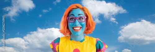 vivid colors, blue skies, smiling woman, vivid colors, casual clothes, sunny day, happiness, individuality