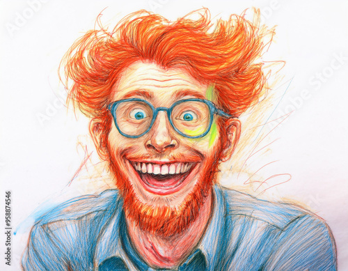 man, head shot, omg, surprised, portrait, expression, drawing, disbelief, vignetting, exaggerated, comical, chaos, creative, whimsical, white, crayons, style, playful, funny, detailed, caricature, illustration, hair, man, design, quirky, wow, person, cute, unique, people, character, caucasian, vibrant, face, cartoon, orange, humor, background, male, shocked, artistic, art, closeup, surprise, closeup, colours