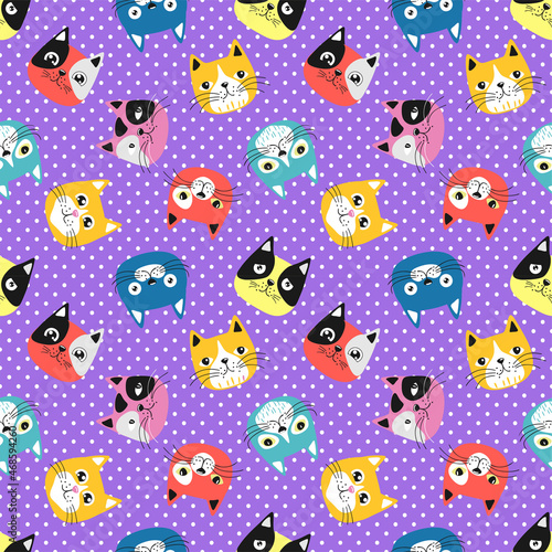 Funny cartoon cats. Seamless pattern.Texture for fabric, wrapping, wallpaper. Decorative print