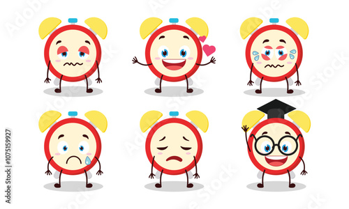 funny clock character with different pose activity design illustration