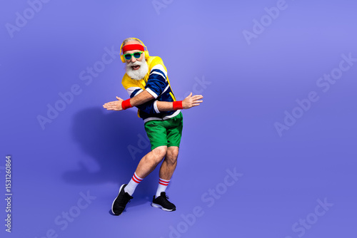 athlete, sportsman, male, man, age, old, elderly, mature, retired, middle, grandfather, beard, photogenic, healthy, activewear, activewear, anorak, headband, retro, vintage, style, fashion, model, funny, funky, body, care, practicing, bodybuilding, bodycare, physical, exercise, fit, leisure, hobby, sportive, sporty, warmup, physical exercise, engaging, colourful, smile, dance, disco, party, positive, listening, music, earphones, sport