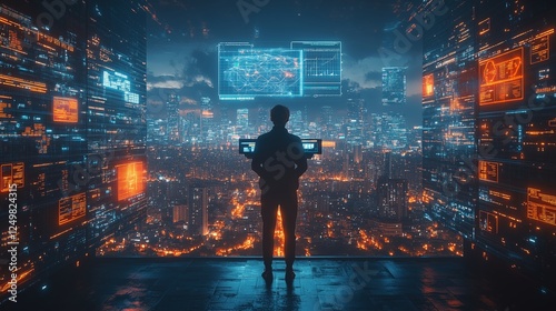 technology, monitoring, datum, night view, urban, screen, information, network, digital, artificial intelligence, modernization, city landscape, control