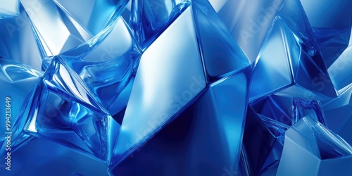 Futuristic abstract background featuring blue glass geometric shapes Isolated design 3D rendering
