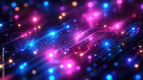 Futuristic abstract background with glowing circuits, neon blue and purple hues, technology-inspired vector design