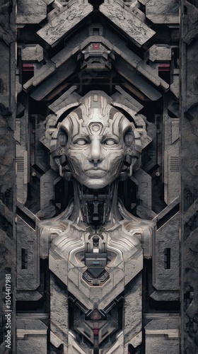 robot, technology, sculpture, artificial, intelligence, digital, futuristic, abstract, head, face, modern, cyborg, model, intricate, texture, grey, wall, pattern, three-dimensional, form, concept, art, structure, design, humanlike, creative, science fiction, portrait, virtual, character, detail, advanced, mechanical, visual, innovative, cybernetic, system, aesthetic, android, environment, dynamic, artistic, organic, human, representation, space, universe, geometry, fantasy