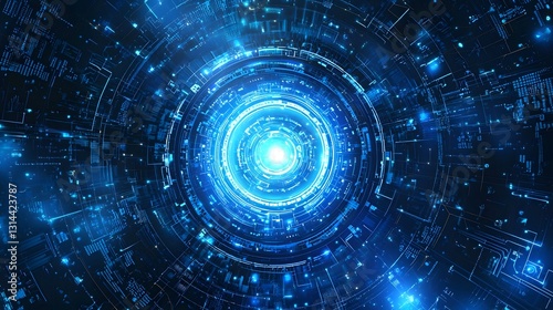 Futuristic Blue Digital Technology Background with Glowing Circuit Lines and Modern Sleek Design