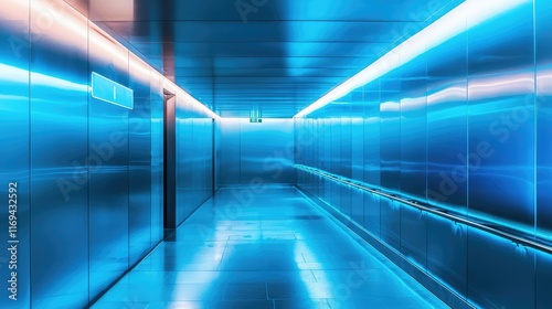 corridor, elevator, blue light, interior, architecture, metallic, sleek, illuminated, hallway, reflections, futuristic, technology, urban, minimalistic, empty space, ambience, contrast, geometric, symmetry, perspective, lighting, surface, texture, wall, isolation, transport, passage, contemporary, linear, travel, building, direction, seamless, environment, sophistication, stylish, artificial light, exploratory, gradient, city life