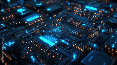 circuit, board, technology, futuristic, electronic, digital, innovation, glowing, light, blue, orange, component, microchip, processor, system, network, datum, information, computer, hardware, software, electric, current, power, signal, connection, integrated, design, engineering, science, development, advanced, modern, complex, intricate, detail, pattern, texture, background, abstract