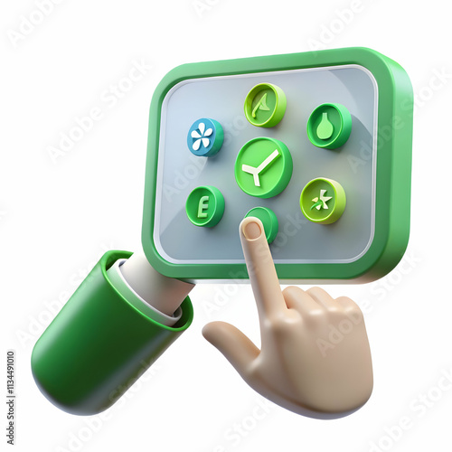 Futuristic Close Up Hand Touch Screen Green Energy Icons Advanced Eco Friendly Business Technology Space for Text