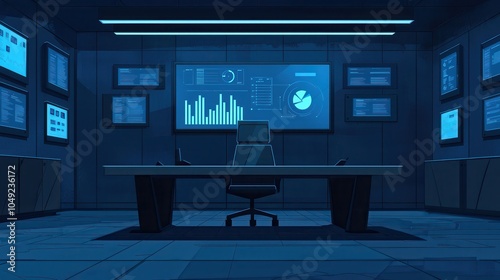 office, technology, datum, workspace, digital, modern, design, corporate, professional, monitor, control, information, statistic, display, empty, chair, interior, layout, futuristic, blue, ambience, equipment, minimalistic, architecture, innovation, system, software, environment, strategy, productivity, management, business, security, communication, branding, visualisation, planning, efficiency, teamwork