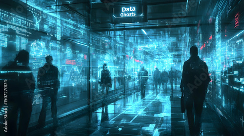 illuminated, tunnel, cyber, futuristic, building, architecture, path, glowing, hallway, technology, information, screen, light, display, digital, design, graphic, corridor, light, abstract, datum, urban, people, future, modern, movement, interior, blue