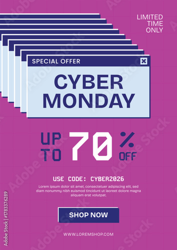 cyber, monday, sale, discount, shopping, online, banner, poster, template, design, digital, futuristic, technology, neon, gradient, blue, purple, abstract, modern, marketing, business, commerce, e-business, advertising, promotion, event, special, web, layout, typography, glow, vibrant, background, style, trendy, offer, deal, social, media, creative, elegant, minimal, graphic