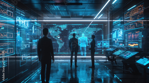 futuristic, professional, world map, hologram, technology, cyber, high technology, information technology, innovation, network security, server room, artificial intelligence, science fiction